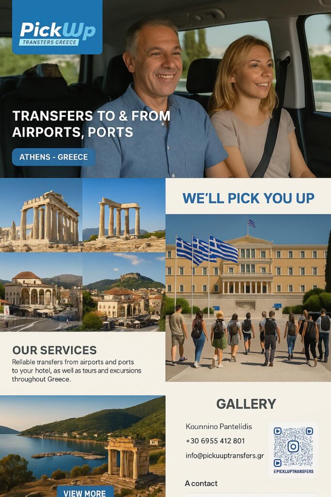 At PICK U Up Transfers Greece, we offer reliable and professional transfer services tailored to your needs. Whether you’re visiting Greece for leisure or business, we ensure your transportation is smooth, safe, and stress-free.